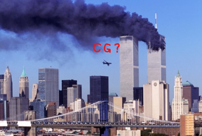 9.11のビルに飛行機が突っ込む映像が流れ